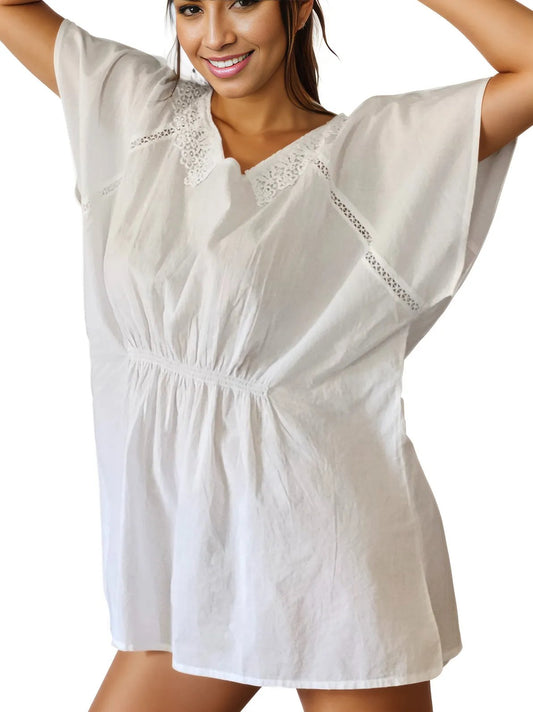Chic 100% Cotton White Kaftan Dress